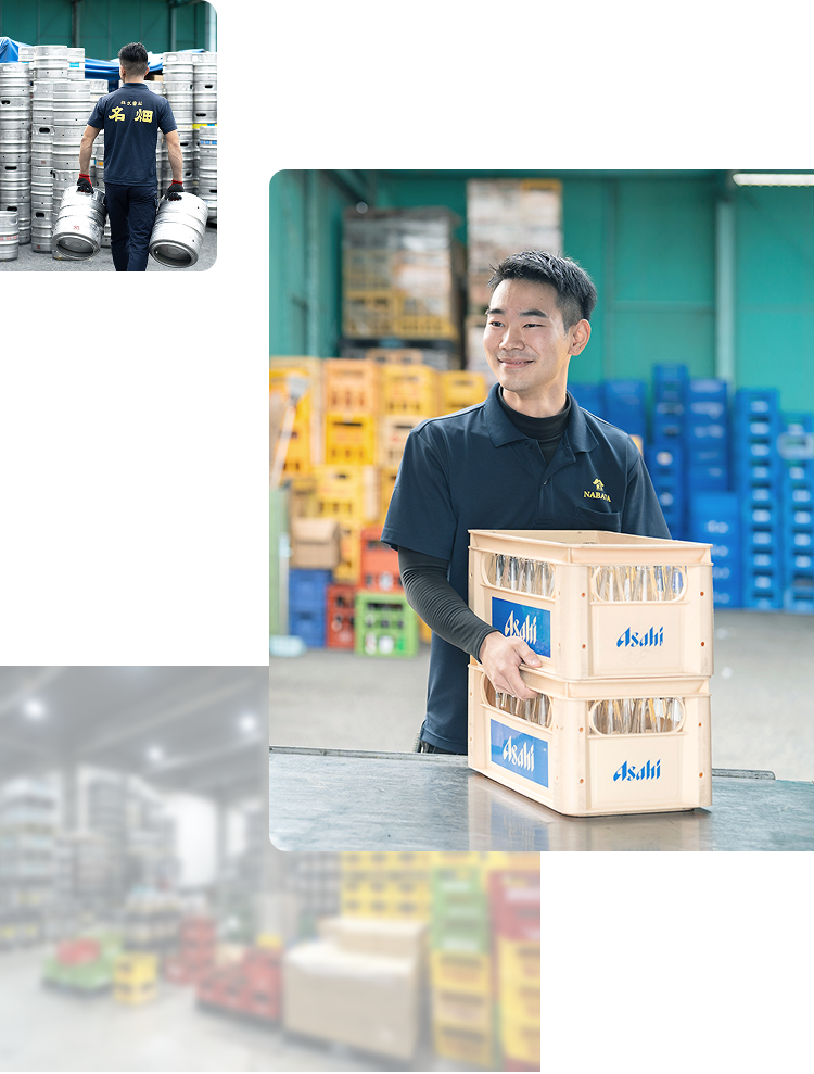 名畑の良いところは、ただ運ぶだけじゃないこと。お店の方と会話をして、信頼関係を築いていく。そこにやりがいを感じています。